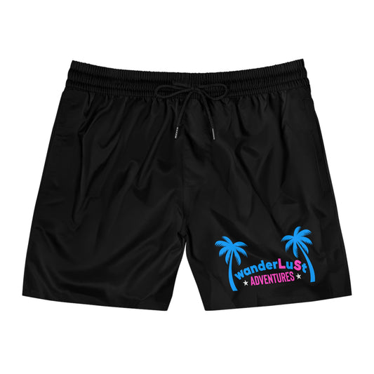 wanderLuSt ADVENTURES Black Men's Mid-Length Swim Shorts (AOP)