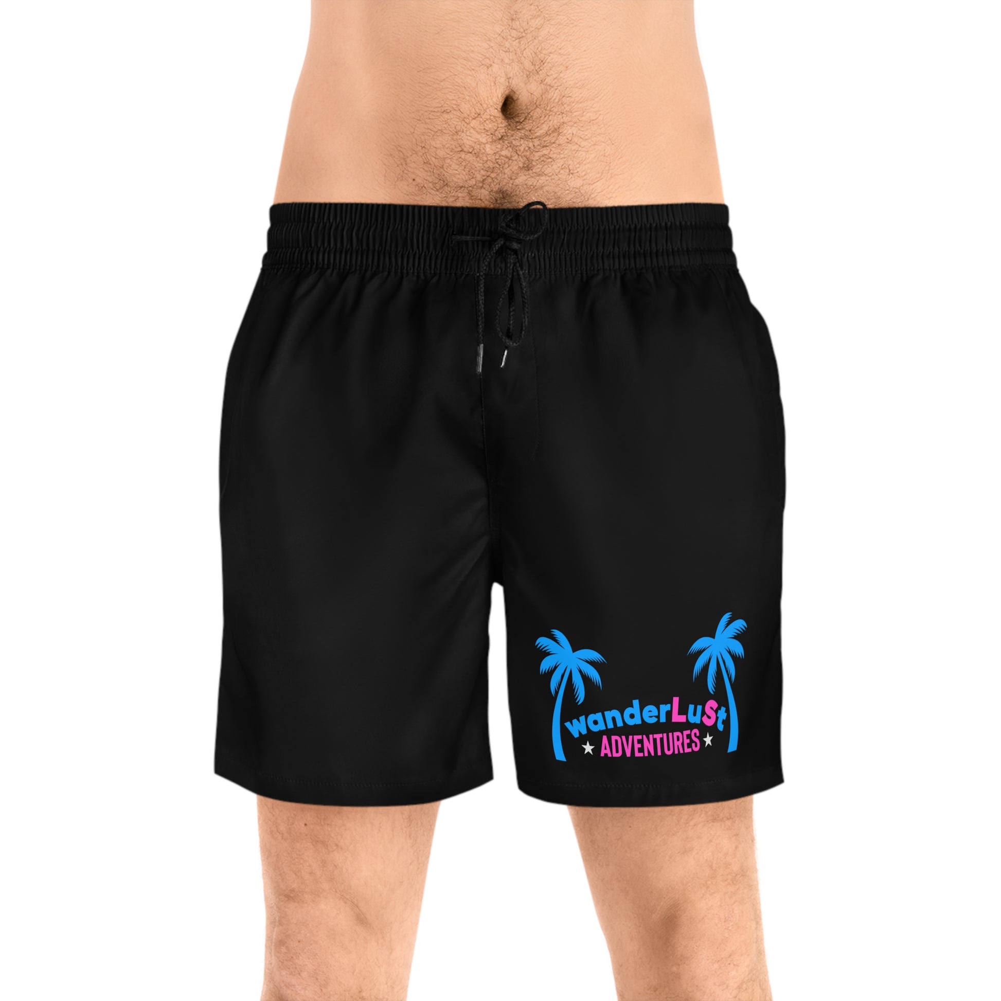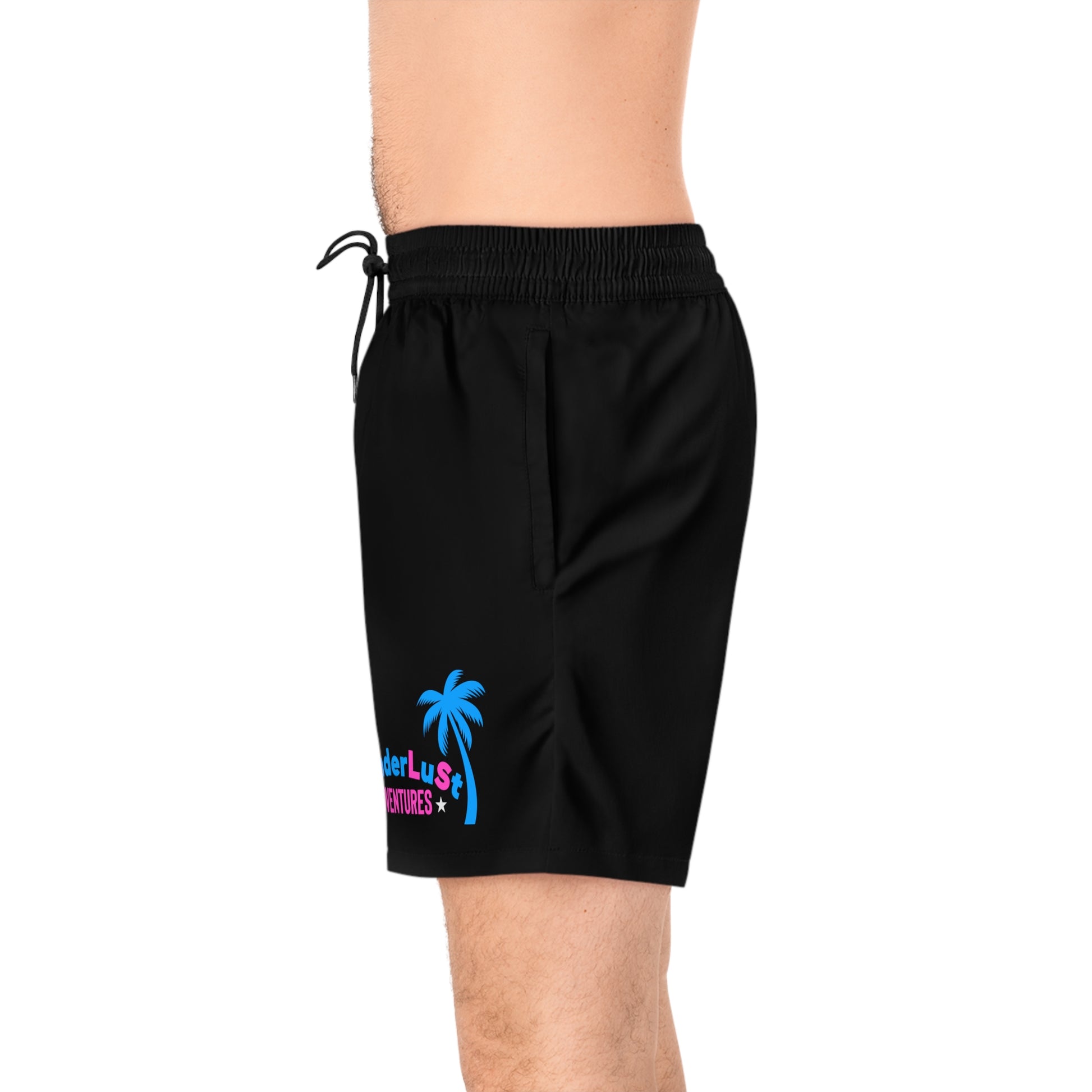 wanderLuSt ADVENTURES Black Men's Mid-Length Swim Shorts (AOP)